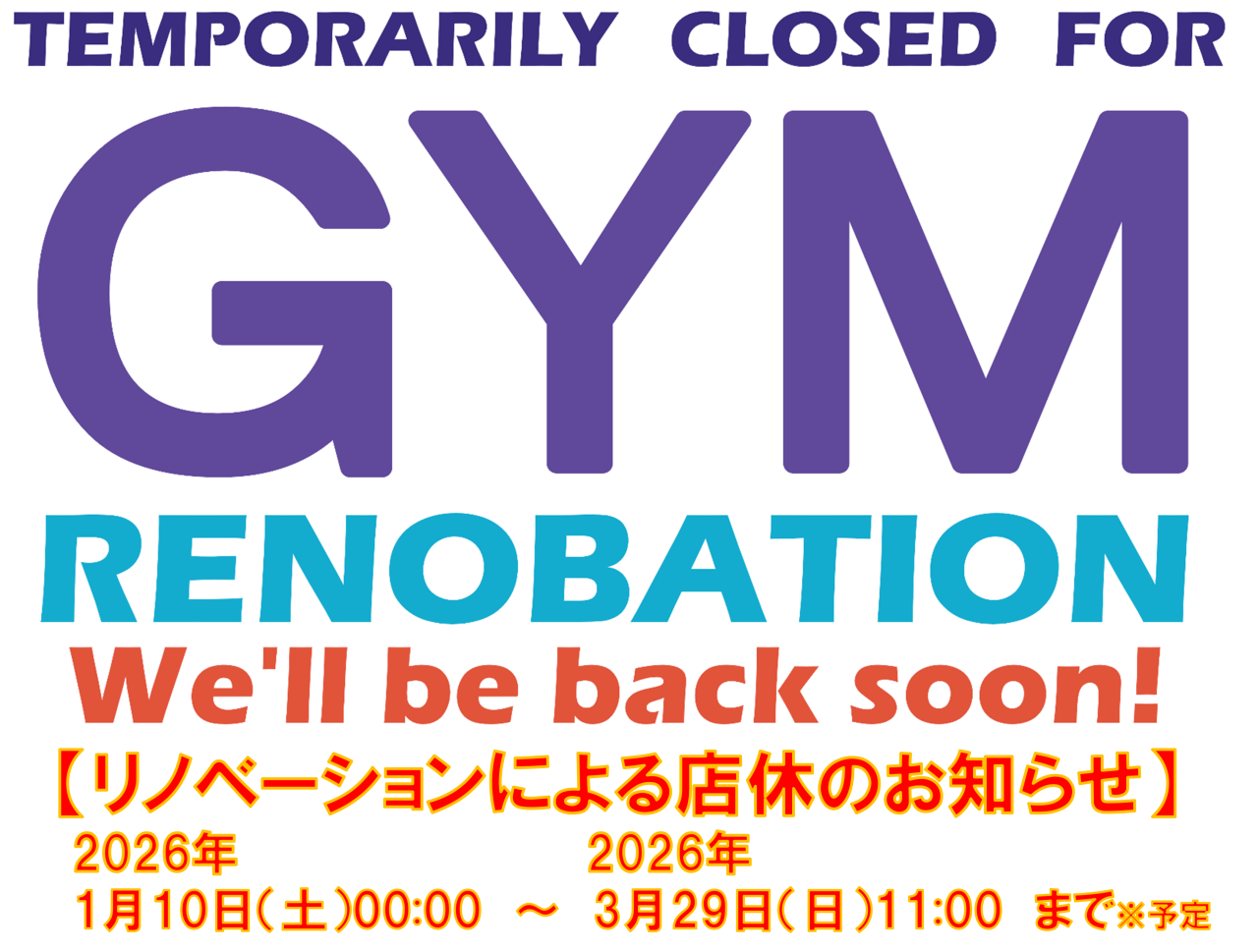 【リノベーション工事による店休・一時閉店のお知らせ】