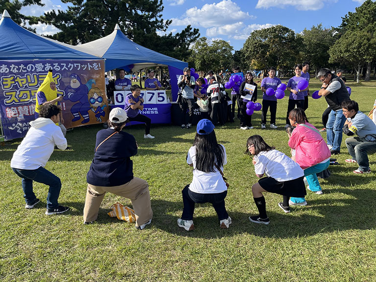 ステージイベントでは「夢叶戦士ズ」のヒーローショーに続き、フィナーレとして、会場の皆さんと一緒に「みんなでチャリティースクワット!」を行いました。会場が一体となって体を動かす喜びを分かち合い、参加者の笑顔と温かい思いやりが溢れるイベントフィナーレとなりました。